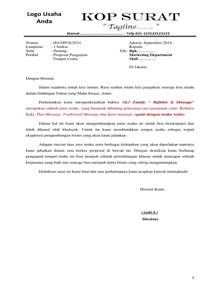 Sementara sewa tempat tetap dibayar normal bahkan tetap dinaikan oleh pemiliknya dimasa pandemic ini. 1 berkas kepada sifat : Contoh produk yang dihasilkan oleh percetakan. Detail artikel terkait contoh proposal pengajuan sewa tempat usaha di mall. Penyelenggaraan izin pemanfaatan ruang, dengan ini kami mengajukan permohonan izin .